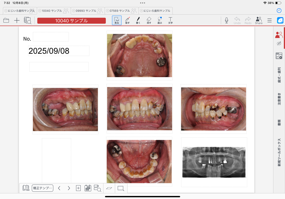 ●口腔内写真:資料どり専用のテンプレートを作成。