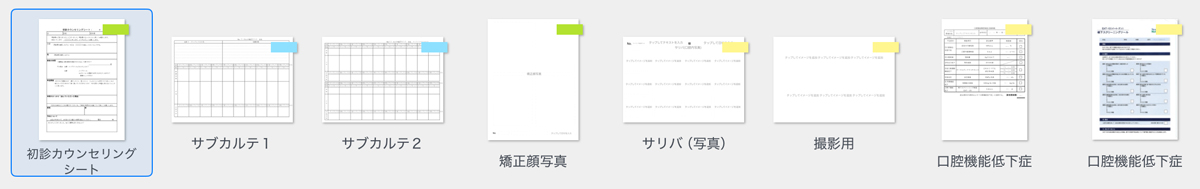主訴や治療計画記入欄のある先頭ページ用と、追加ページ用が用意されている。