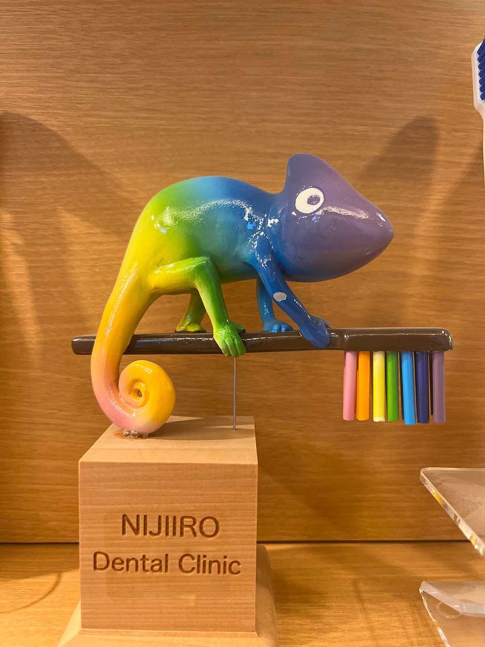 にじいろ歯科のシンボルは、カメレオン。これからも、院長のもとでスタッフが一丸となり様々なチャレンジを重ね、カメレオンのようにいろんな変化を見せてくれるに違いありません。(2025年9月取材)
